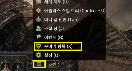 4. 게임에 접속해 주신 후 [꾸미기 항목] 메뉴로 이동해 주세요.