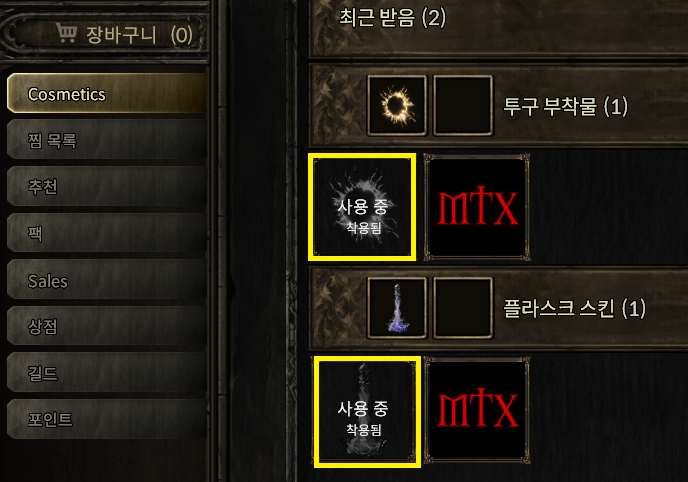 5. 이동한 메뉴에서 획득한 스킨을 확인하고 장착할 수 있습니다.