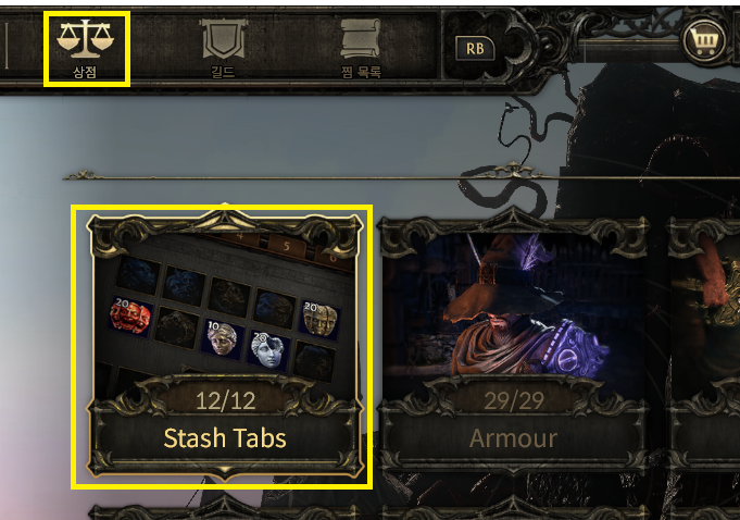 [포인트 아이템 상점 → '상점' → 'Stach Tabs' → '프리미엄 보관함'이 붙은 상품 구매]